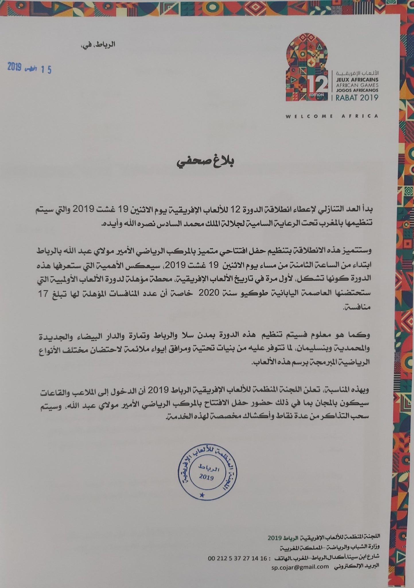 المغرب يوقع رسميا مذكرة التفاهم لتنظيم دورة الألعاب الإفريقية 2019